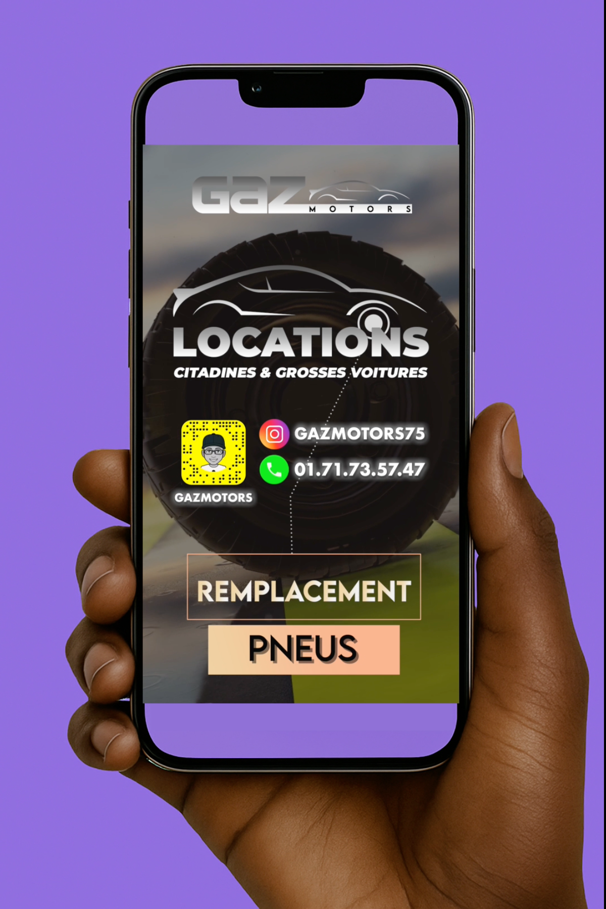 - 1 visuel mockup (smartphone + fond personnalisé)